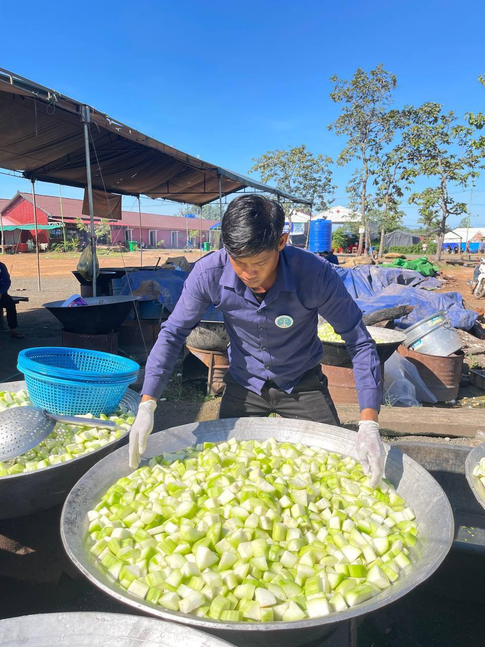ក្រុមការងារសហព័ន្ធយុវជនបូជាការពារយុត្តិធម៌ ក្រោមការដឹកនាំរបស់អ្នកឧកញ៉ា ឡេង ណាវ៉ាត្រា ប្រធានសហព័ន្ធ បានបន្តរៀបចំចម្អិនម្ហូបអាហារប្រចាំថ្ងៃចំនួន ២ពេលដល់ជនភៀសសឹកនៅជំរំមណ្ឌលសុវត្ថិភាពវត្តពោធិ៍ ៥០០០ដើម ក្នុងស្រុកគូលែន និងវត្តកំពង់សង្កែ ស្រុកឆែប ខេត្តព្រះវិហារ។