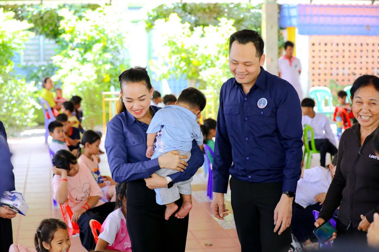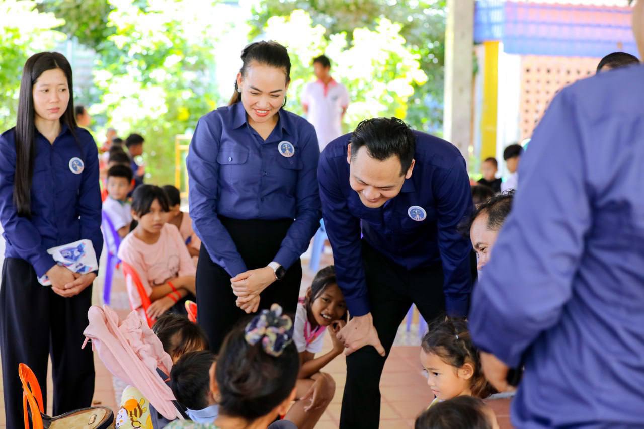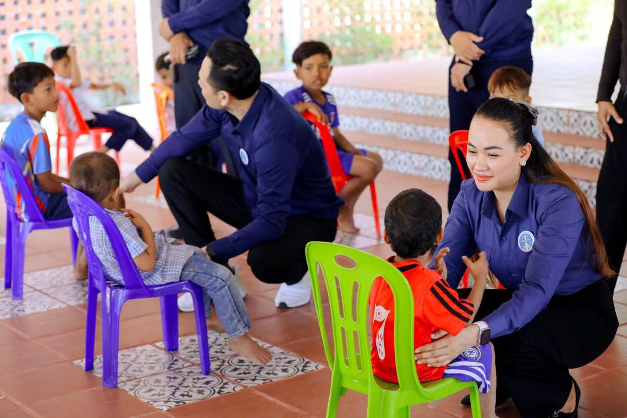 អ្នកឧកញ៉ា ឡេង ប្រុស និងលោកជំទាវ តំណាងអ្នកឧកញ៉ា ឡេង ណាវ៉ាត្រា ប្រធានសហព័ន្ធយុវជនបូជាការពារយុត្តិធម៌ អញ្ជើញសួរសុខទុក្ខ និងរៀបចំអាហារជូនដល់កុមារកំព្រានៅមណ្ឌលមែកឈើ