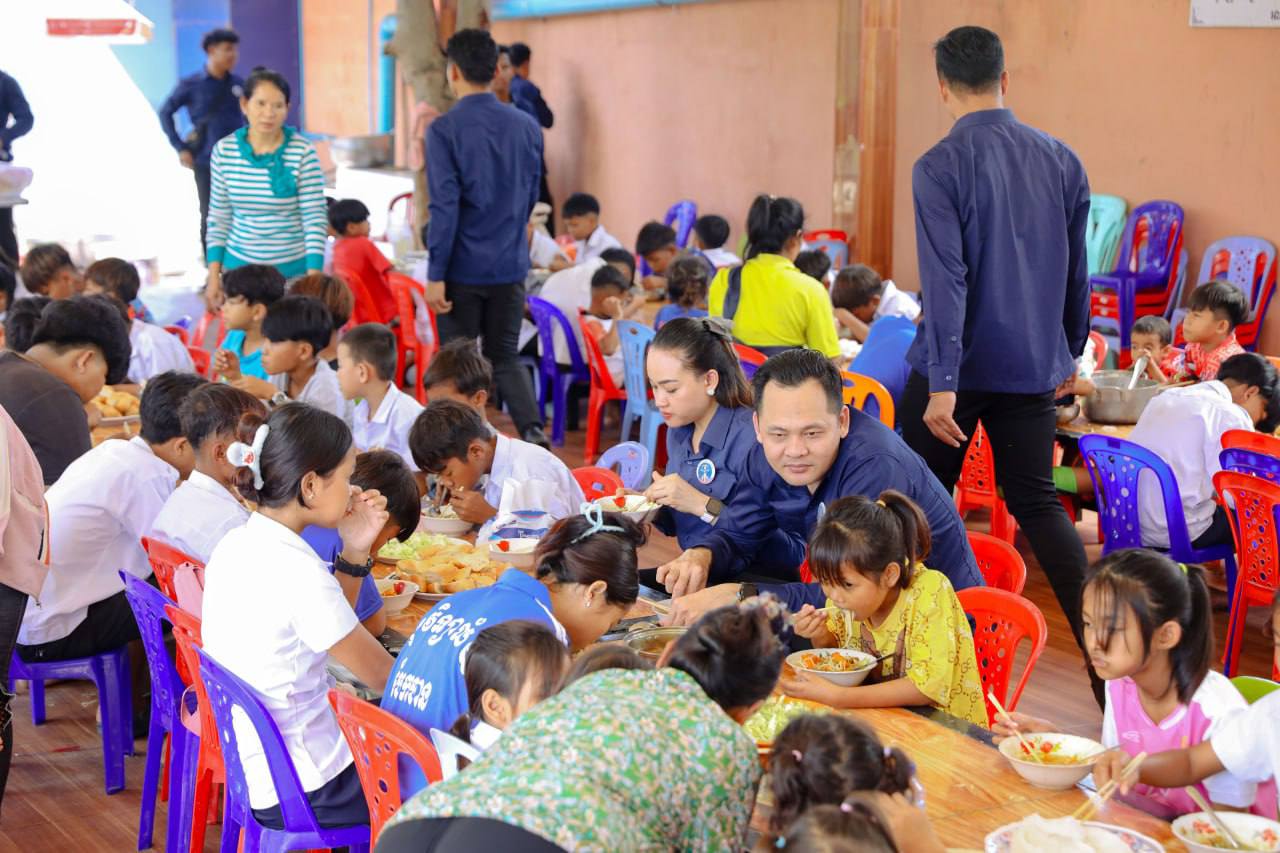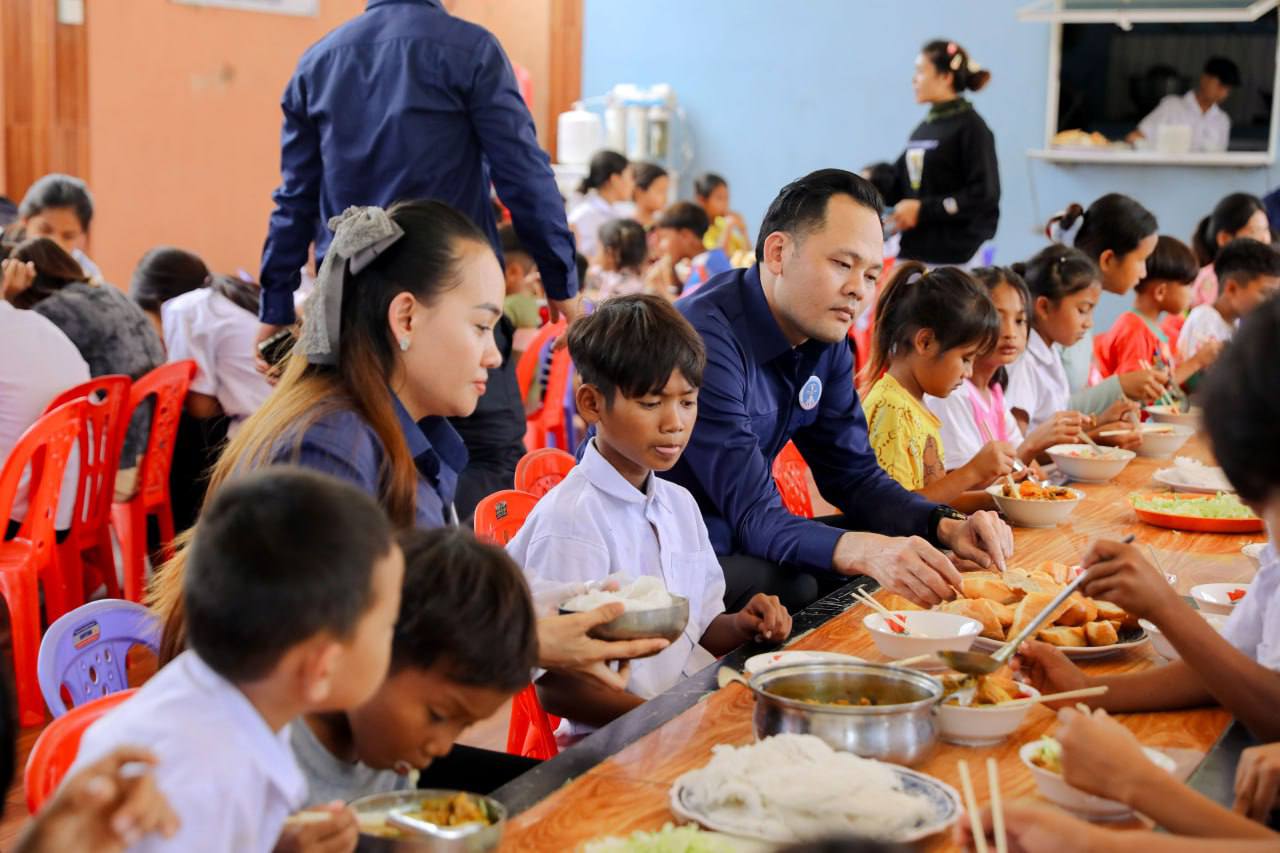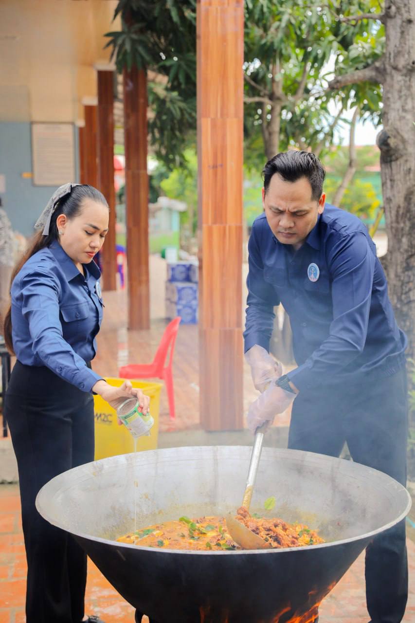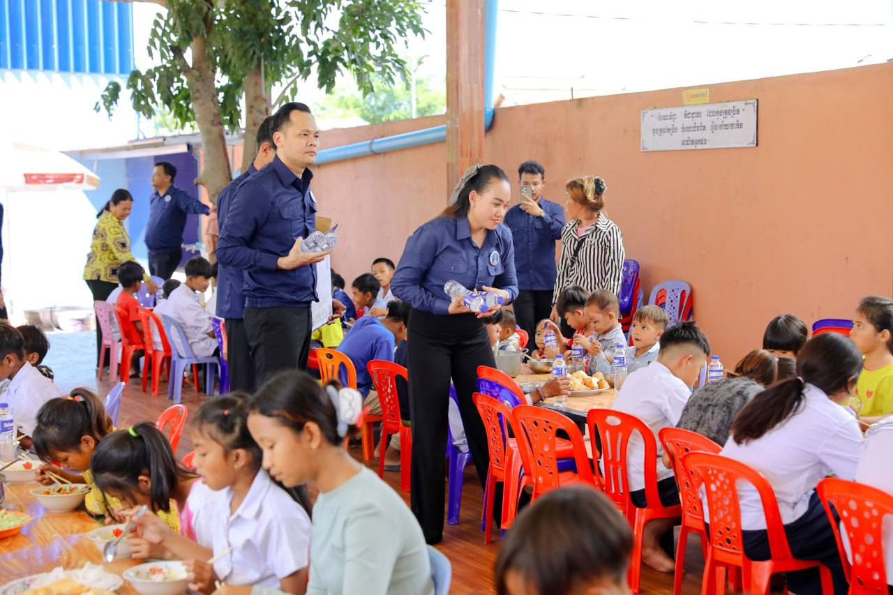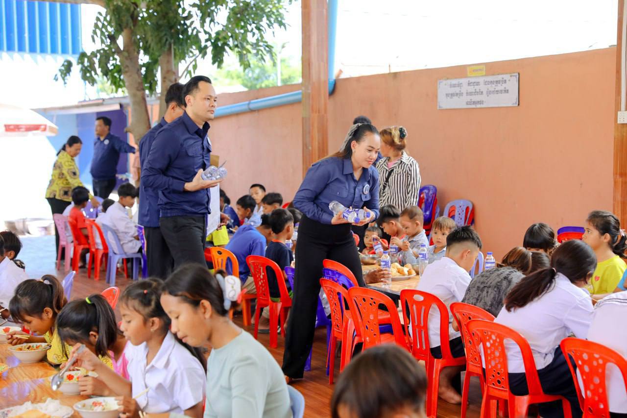 ក្នុងឱកាសចុះសួរសុខទុក្ខខាងលើ ប្រកបដោយក្តីអាណិតស្រលាញ់ ជាមួយនិងស្នាមញញឹមដែលពោពេញទៅដោយភាពកក់ក្តៅ អ្នកឧកញ៉ា និងក្រុមការងារបានរៀបចំអាហារមួយពេលសម្លការីនំប៉័ង នំបញ្ចុក ជូនដល់ក្មួយៗកុមារកំព្រា និងបុគ្គលិកទាំងអស់ផងដែរ។