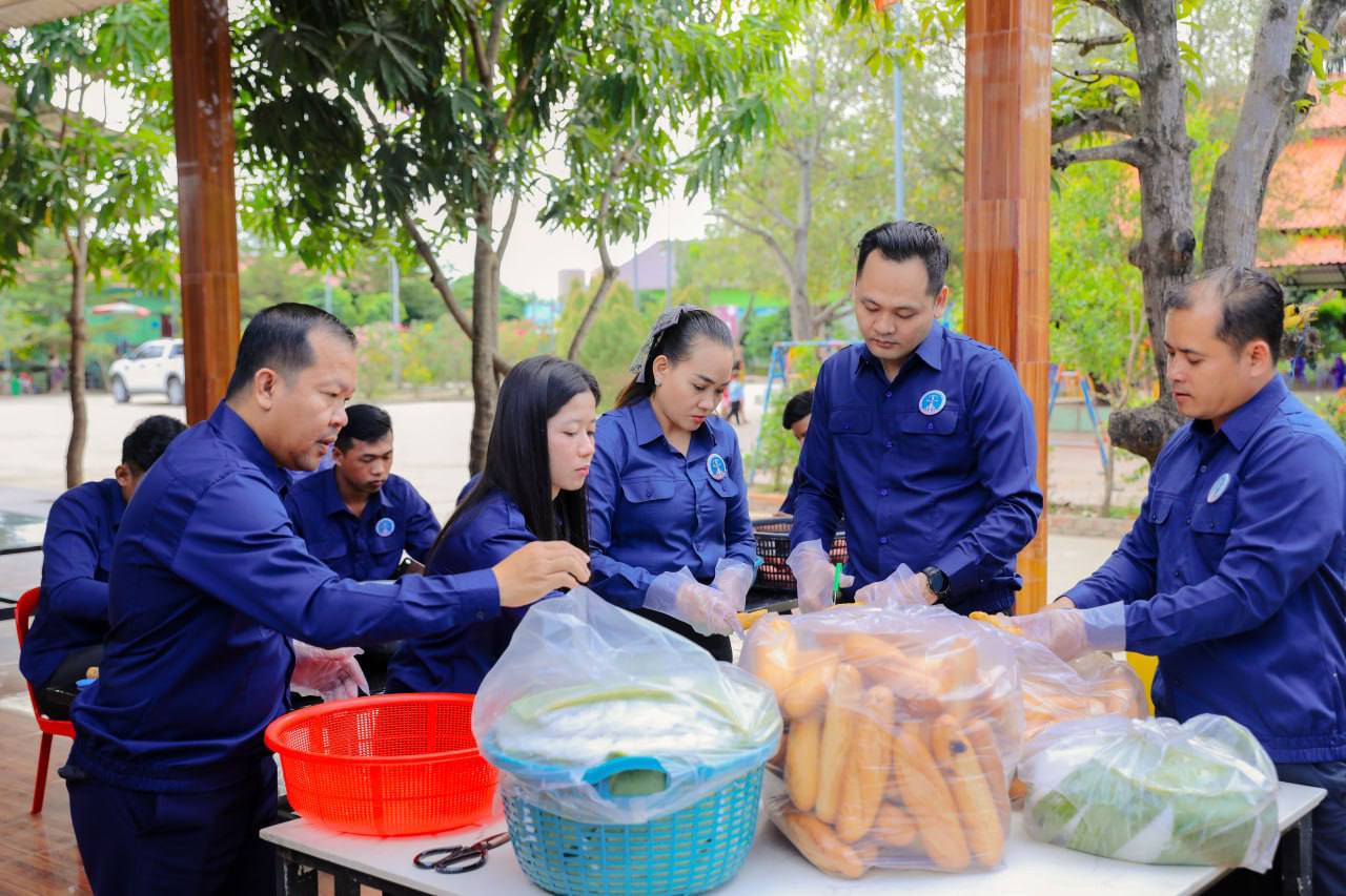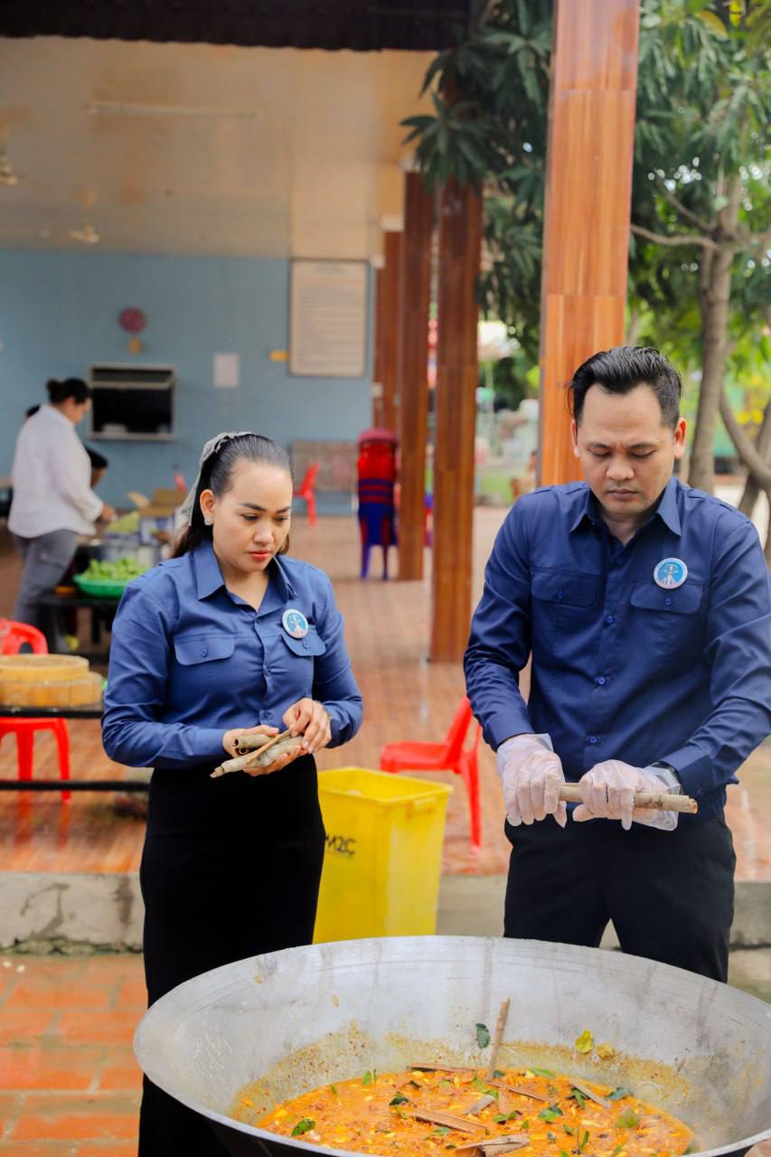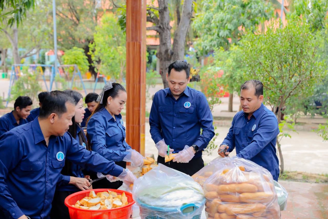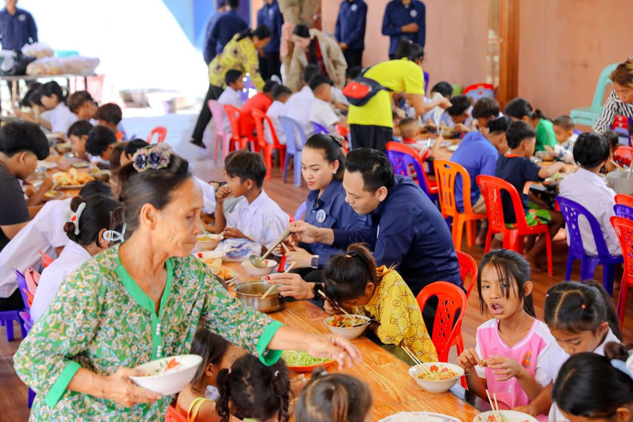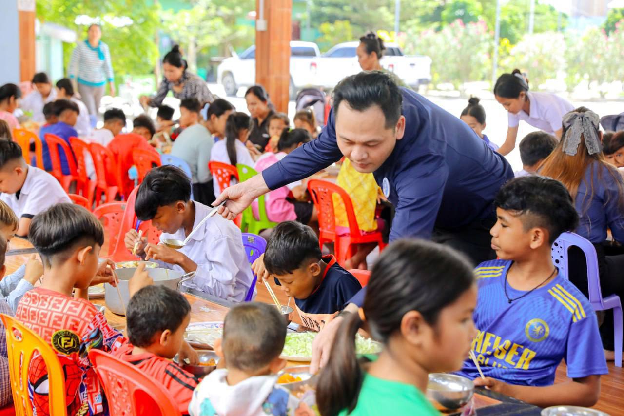 ក្នុងឱកាសចុះសួរសុខទុក្ខខាងលើ ប្រកបដោយក្តីអាណិតស្រលាញ់ ជាមួយនិងស្នាមញញឹមដែលពោពេញទៅដោយភាពកក់ក្តៅ អ្នកឧកញ៉ា និងក្រុមការងារបានរៀបចំអាហារមួយពេលសម្លការីនំប៉័ង នំបញ្ចុក ជូនដល់ក្មួយៗកុមារកំព្រា និងបុគ្គលិកទាំងអស់ផងដែរ។