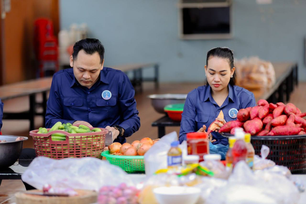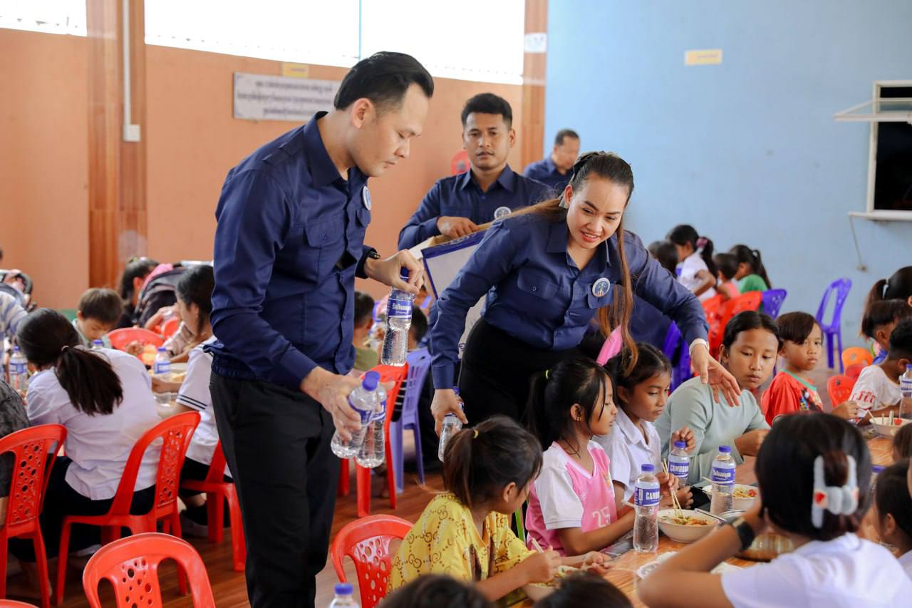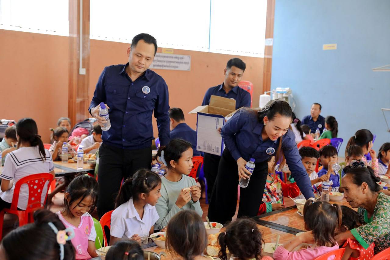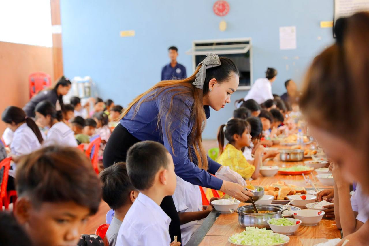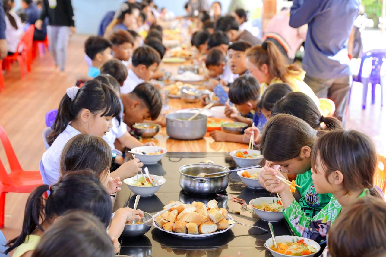 ក្នុងឱកាសចុះសួរសុខទុក្ខខាងលើ ប្រកបដោយក្តីអាណិតស្រលាញ់ ជាមួយនិងស្នាមញញឹមដែលពោពេញទៅដោយភាពកក់ក្តៅ អ្នកឧកញ៉ា និងក្រុមការងារបានរៀបចំអាហារមួយពេលសម្លការីនំប៉័ង នំបញ្ចុក ជូនដល់ក្មួយៗកុមារកំព្រា និងបុគ្គលិកទាំងអស់ផងដែរ។