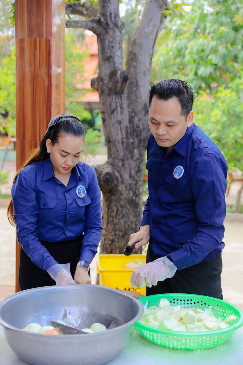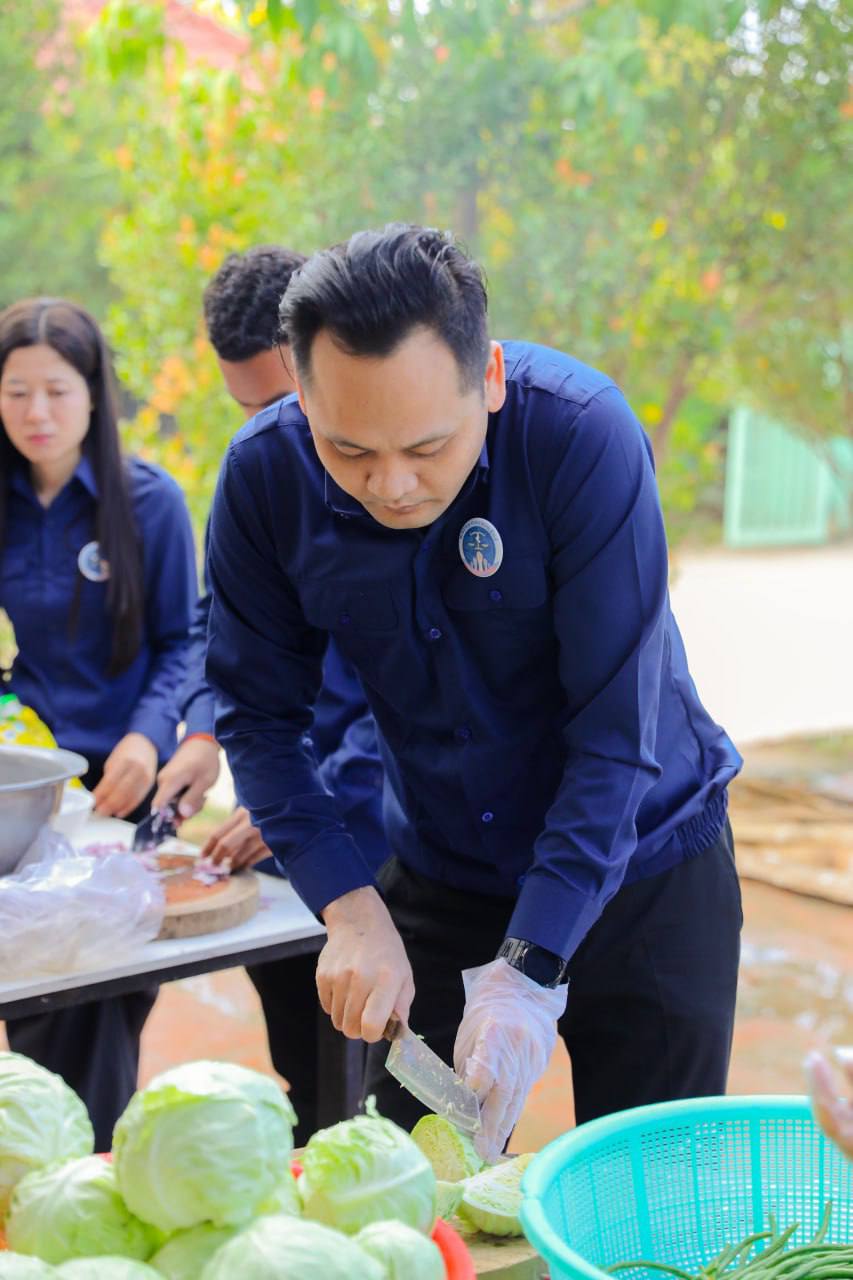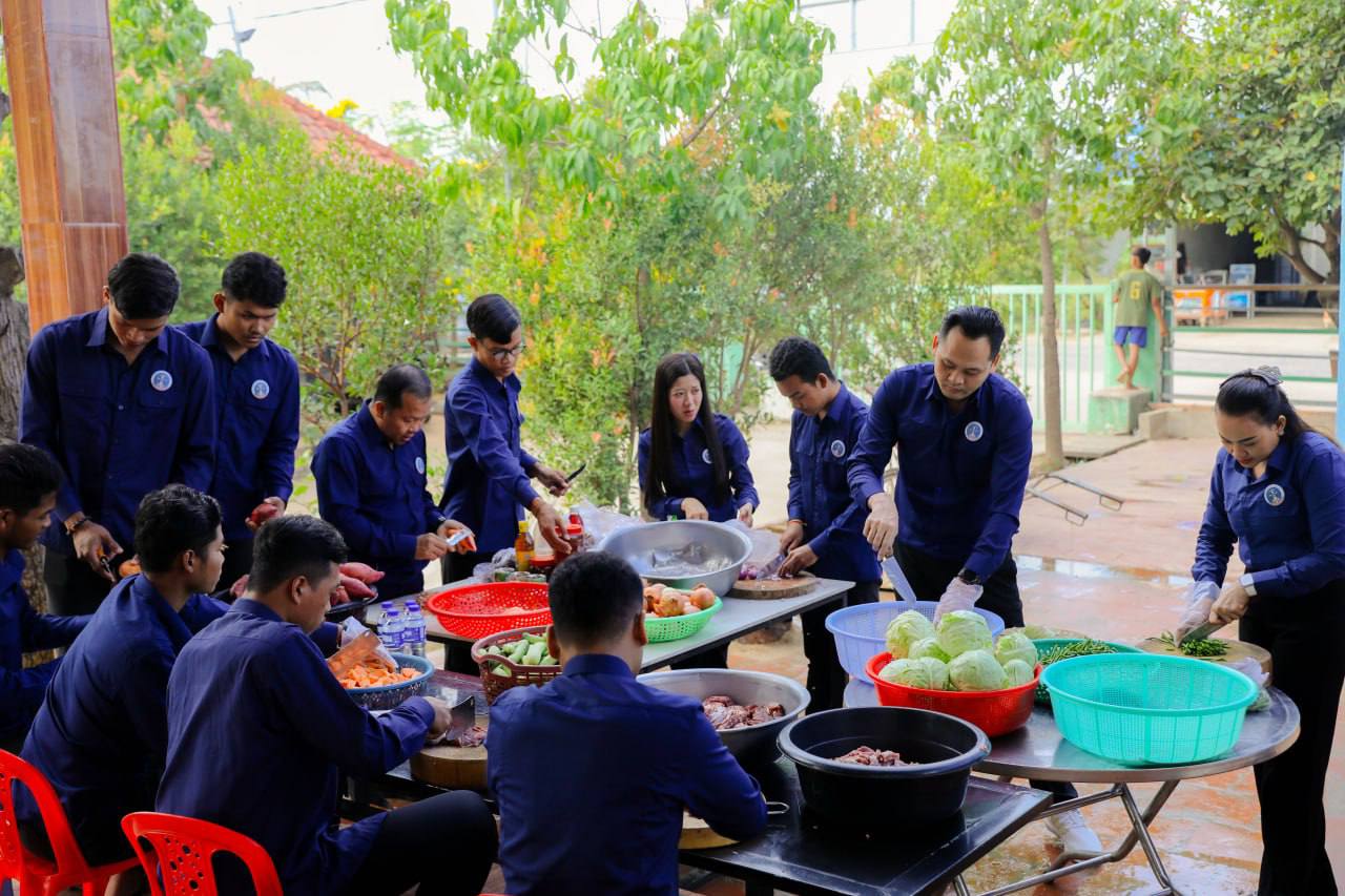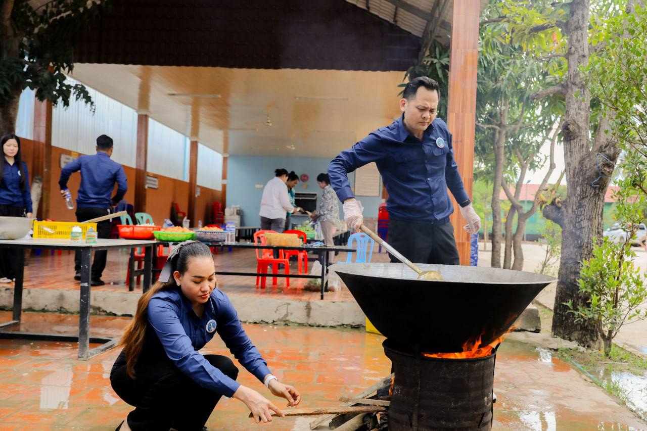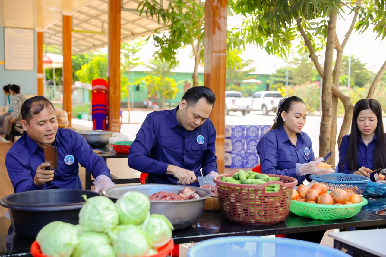 ក្នុងឱកាសចុះសួរសុខទុក្ខខាងលើ ប្រកបដោយក្តីអាណិតស្រលាញ់ ជាមួយនិងស្នាមញញឹមដែលពោពេញទៅដោយភាពកក់ក្តៅ អ្នកឧកញ៉ា និងក្រុមការងារបានរៀបចំអាហារមួយពេលសម្លការីនំប៉័ង នំបញ្ចុក ជូនដល់ក្មួយៗកុមារកំព្រា និងបុគ្គលិកទាំងអស់ផងដែរ។
