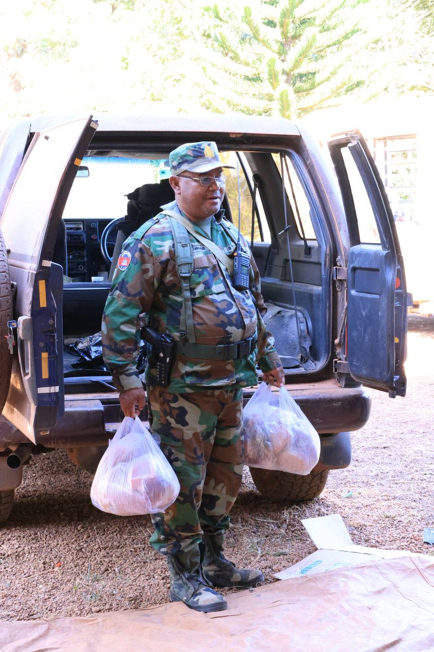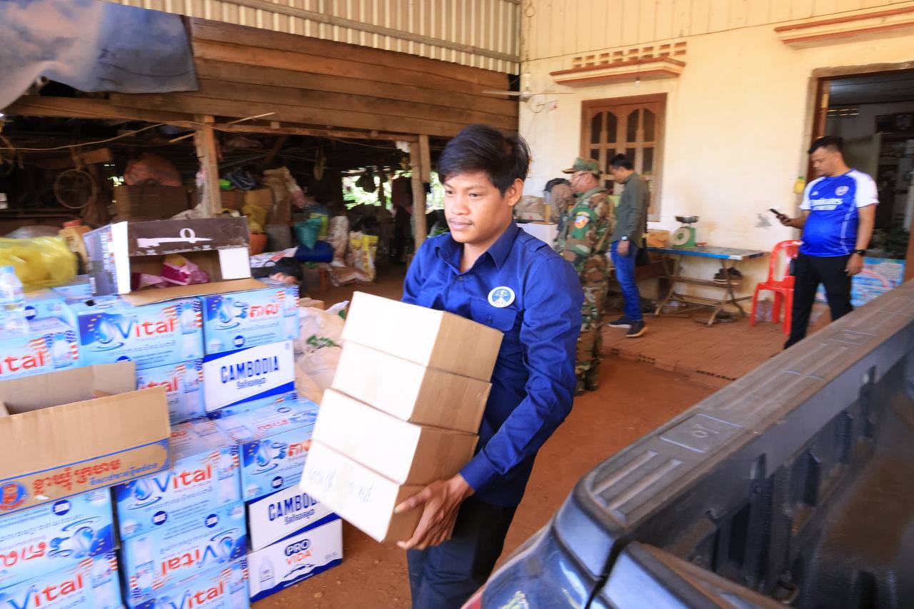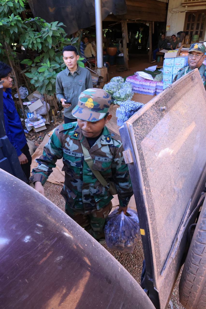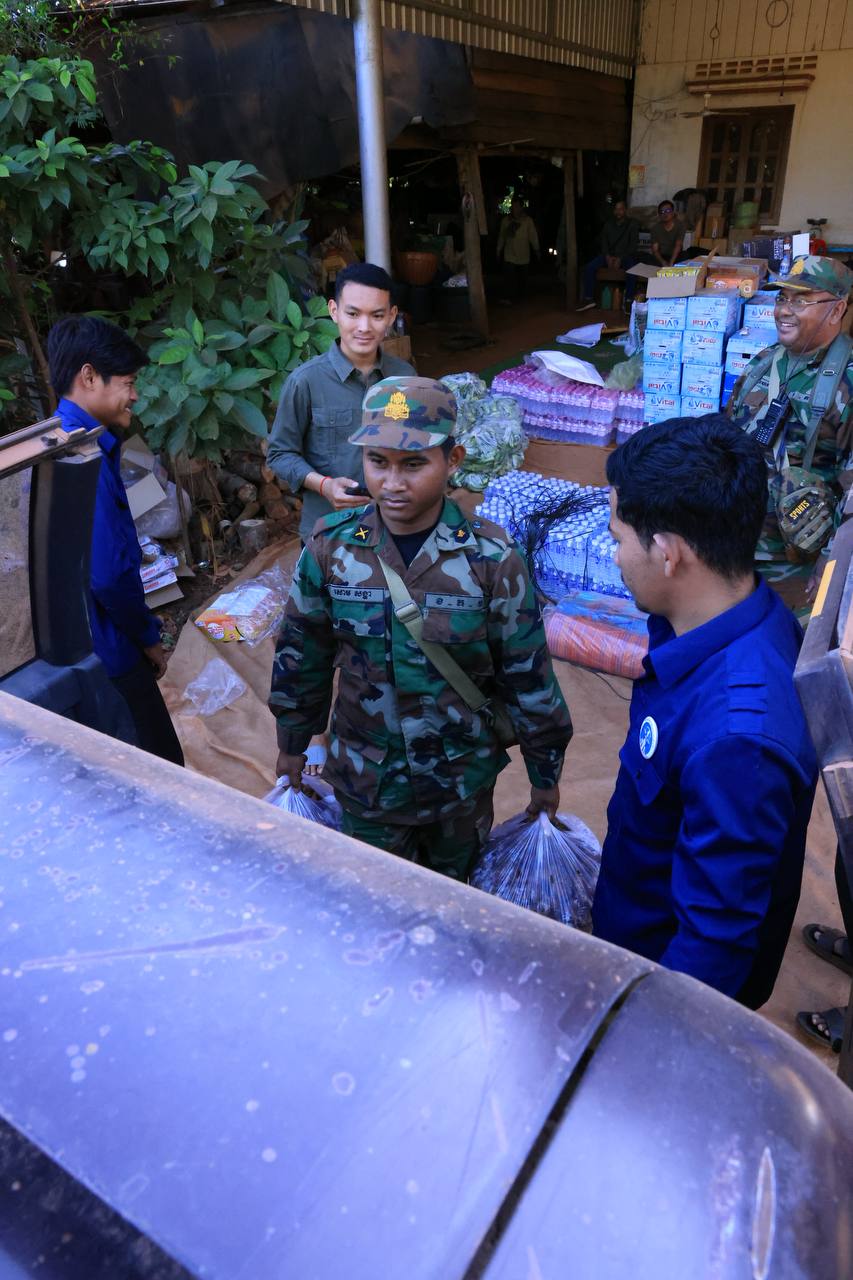 ជាក់ស្តែងនៅថ្ងៃទី២៤ធ្នូនេះ អ្នកឧកញ៉ា ឡេង ណាវ៉ាត្រា បានចង្អុលបង្ហាញក្រុមយុវជនបូជាការពារយុត្តិធម៌ យកអំណោយស្បៀងអាហារ និងសម្ភារៈចាំបាច់មួយចំនួន ដើម្បីលើកទឹកចិត្តគាំទ្រកងទ័ព និងជនភៀសសឹក។