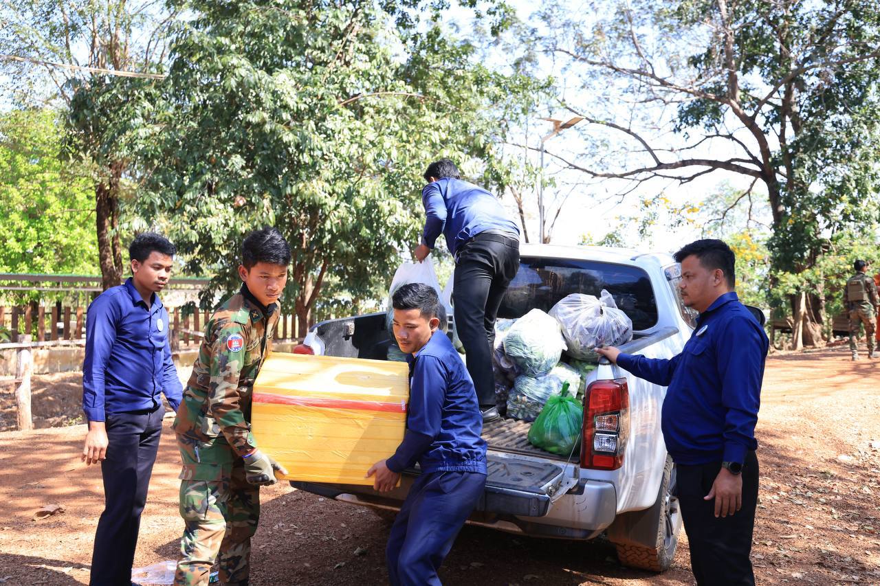 ក្នុងស្មារតីគាំទ្រ និងលើកទឹកចិត្តសមរភូមិមុខ, អ្នកឧកញ៉ា ឡេង ណាវ៉ាត្រា ប្រធានសហព័ន្ធយុវជនបូជាការពារយុត្តិធម៌ បានចង្អុលបង្ហាញក្រុមការងារដើម្បីរៀបចំស្បៀងអាហារ សម្រាប់យកទៅប្រគល់ជូមដល់វីរកងទ័ព និងជនភៀសសឹក។