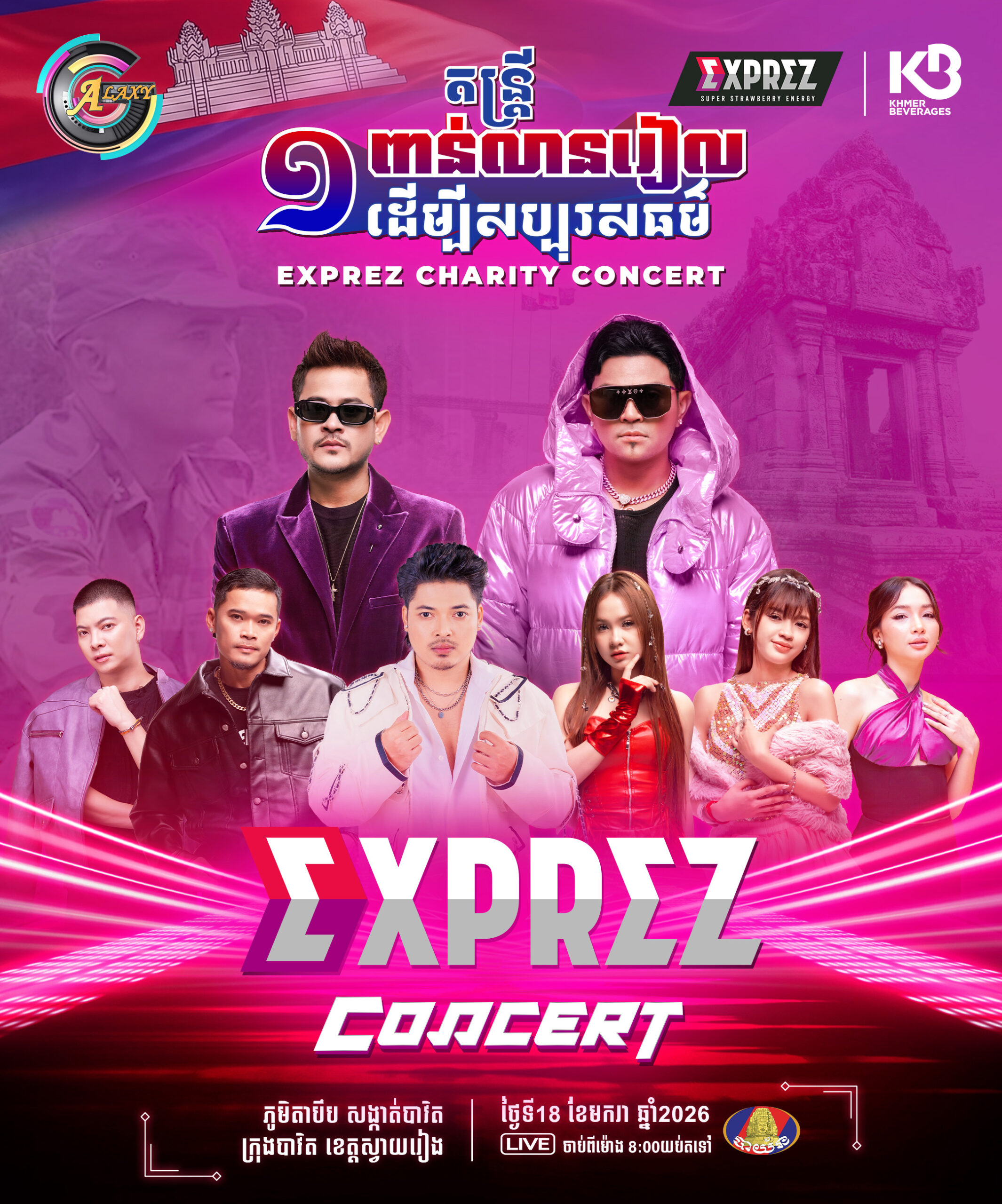 ព្រឹត្តិការណ៍ប្រគំតន្រ្តីសប្បុរសធម៌ EXPREZ CHARITY CONCERT នៅខេត្ត ស្វាយរៀង នឹងរៀបចំឡើងរយៈពេល២ថ្ងៃជាប់ៗគ្នា ចាប់ពីថ្ងៃទី ១៧ ខែ មករា ឆ្នាំ ២០២៦ ដល់ថ្ងៃទី ១៨ ខែ មករា ឆ្នាំ២០២៦ ដែលមានការចូលរួមច្រៀងនិងសម្តែងពីកំពូលតារាចម្រៀងល្បីៗប្រចាំនៅក្នុងផលិតកម្ម ហ្គាឡាក់ស៊ី ណាវ៉ាត្រា ជាច្រើនរូប ជាក់ស្តែងនៅថ្ងៃដំបូងជួបជាមួយកំពូលតារាចម្រៀងល្បីៗដូចជាលោក ព្រាប សុវត្ថិ ,កញ្ញា តន់ ចន្ទសីម៉ា សុវត្ថិ មុនីវណ្ណ , អ្នកនាង ខាត់ សួស្តី និងតារាចម្រៀងវ័យក្មេងជាច្រើនរូបទៀត ។ ដោយឡែក នៅក្នុងថ្ងៃទី ១៨ ខែ មករា ឯណោះវិញ នឹងជួបជាមួយ កំពូលតារាចម្រៀង ឧកញ៉ា ខេមរៈ សិរីមន្ត , លោក ខេម , លោក គូម៉ា និងតារាចម្រៀងវ័យក្មេងជាច្រើនរូបផ្សេងទៀត ។
