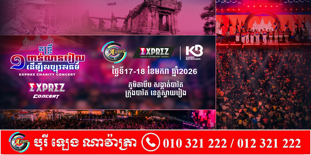 ដូចមហាជនបានឃើញស្រាប់ហើយថា បន្ទាប់ពីជោគជ័យនិងផ្ទុះការរគាំទ្រខ្លាំងពីមហាជន ក្នុងការរៀបចំការប្រគំតន្រ្តី EXPREZ CHARITY CONCERT បានមកដល់ភូមិតាបឹប សង្កាត់បាវិត ក្រុងបាវិត ខេត្តស្វាយរៀង ហើយនៅចុងសប្តាហ៍នេះ ដែលព្រឹត្តិការណ៍ប្រគំតន្រ្តីនេះរៀបចំឡើងដើម្បីស្វែងរកជំនួយជូយសាងសង់សាលារៀន ក៏ដូចជាជួយដល់អ្នកកំពុងរងគ្រោះដោយសារការឈ្លានពានរបស់កងទ័ព ថៃ ។