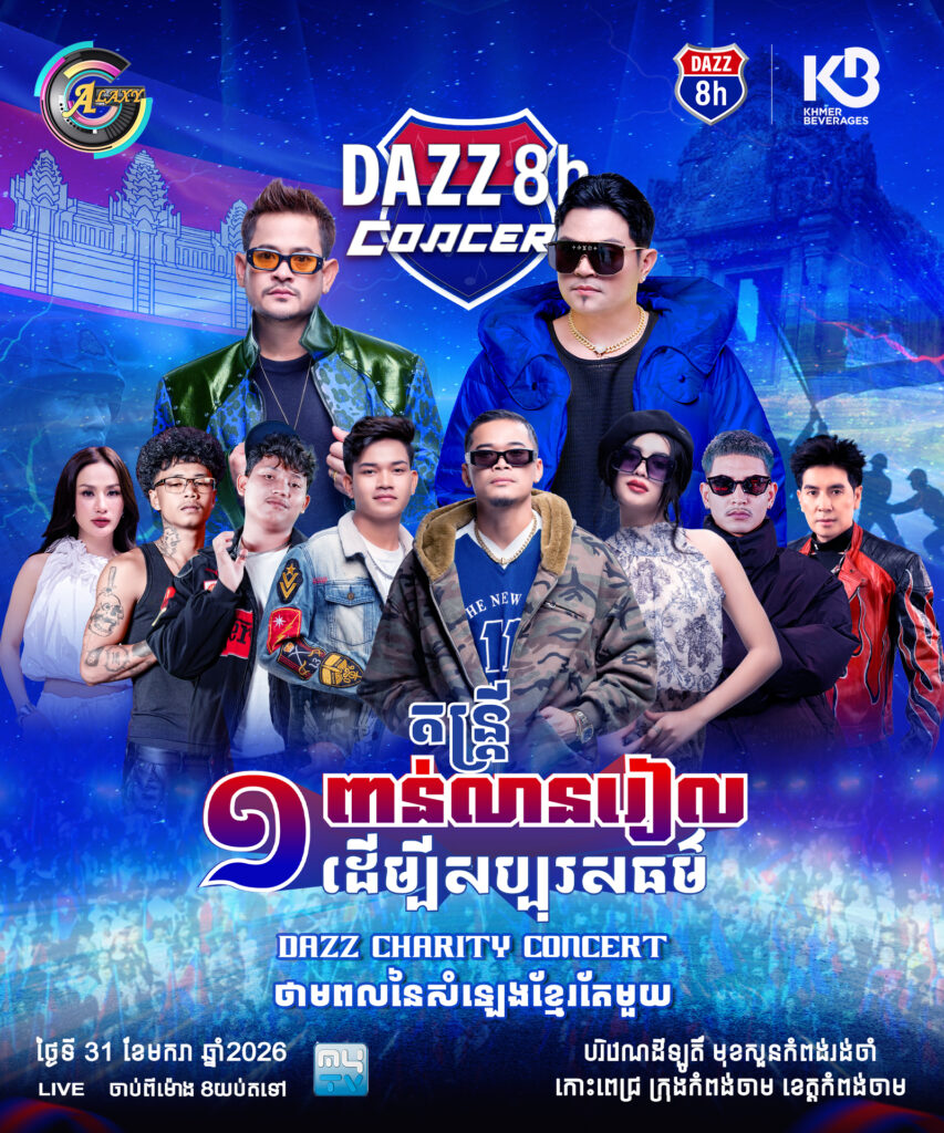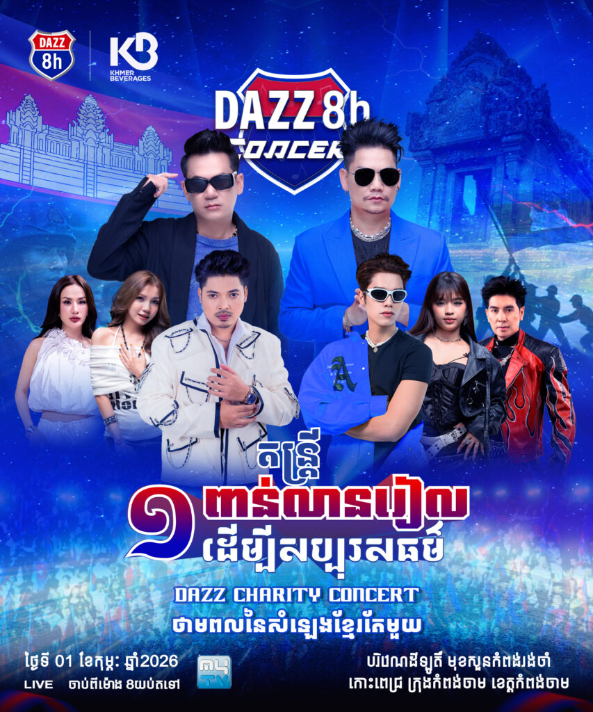 ព្រឹត្តិការណ៍ប្រគំតន្រ្តី DAZZ CHARITY CONCERT ទើបតែបញ្ចប់នៅ ស្រុកព្រៃឈរ ខេត្តកំពង់ចាម ហើយក៏បានបន្តដំណើរទៅក្រុងកំពង់ចាម ជាបន្តទៀតនៅបំណាច់ខែ មករា នេះ ដើម្បីនាំអារម្មណ៍ថ្មីប្លែកចែកររំលែកដល់ពុកម៉ែបងប្អូនដែលស្នេហាវិស័យចម្រៀង ។ តារាចម្រៀងដែលនឹងជួបពុកម៉ែបងប្អូននៅថ្ងៃទី ៣១ ខែ មករា ឆ្នាំ ២០២៦ នៅក្នុងព្រឹត្តិការណ៍ប្រគំតន្រ្តី DAZZ CHARITY CONCERT រួមមានកំពូលតារាចម្រៀង ឧកញ៉ា ខេមរៈ សិរីមន្ត , លោក ខេម ព្រមទាំងតារាចម្រៀងជាច្រើនរូបទៀត។ ដោយឡែកនៅថ្ងៃទី ១ ខែ កុម្ភះ ឆ្នាំ ២០២៦ឯណោះវិញជួបជាមួយកំពូលតារាចម្រៀង លោក ព្រាប សុវត្ថិ , លោក ខាន់ ជេមស៌ , លោក គូម៉ា និង សុវត្ថិ មុនីវណ្ណ …ព្រមទាំងតារាចម្រៀងវ័យក្មេង សំឡេងពិរោះជាច្រើនរូបទៀត ។