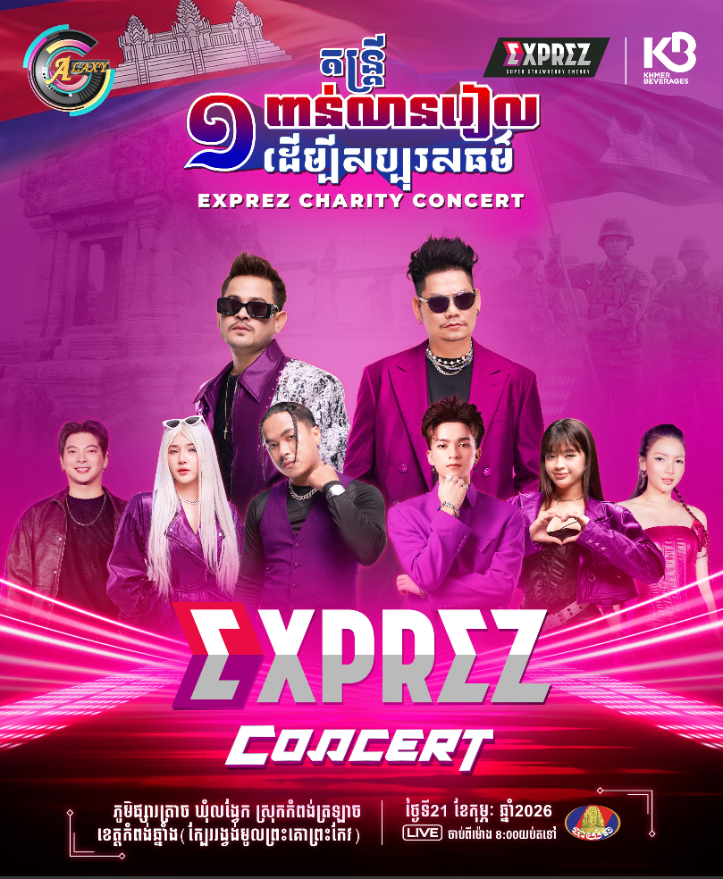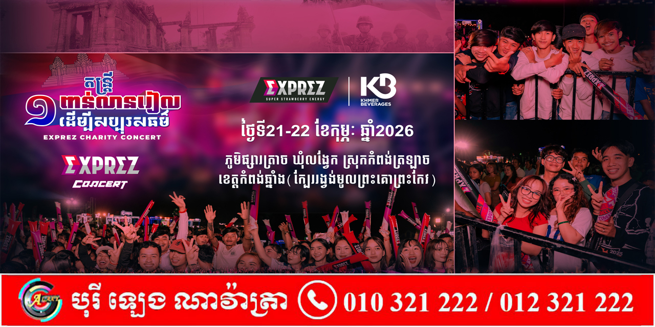 កុំភ្លេចណាត់ជួបគ្នាក្នុងព្រឹត្តិការណ៍ប្រគំតន្រ្តី EXPREZ CHARITY CONCERT ដើម្បីទទួលបានអារម្មណ៍ ថ្មី ប្លែក អស្ចារ្យ ព្រមទាំងបានថតរូបនិងជួបផ្ទាល់ពីកំពូលតារាចម្រៀងដែលជា Idol នៅក្នុងដួងចិត្តរបស់បងប្អូន ជាពិសេសការចូលរួមទស្សនាក្នុងការប្រគំតន្រ្តីនេះ គឺចូលរួមដោយឥតគិតថ្លៃ មិនមានការទិញសំបុត្រឡើយ ចង់ចូលរួមប៉ុន្មាននាក់ ក៏ខាង EXPREZ CHARITY CONCERT ទទួលបានទាំងអស់ ។ រីករាយជាមួយព្រឹត្តិការណ៍ប្រគំតន្រ្តី EXPREZ CHARITY CONCERT ទាំងអស់គ្នា ។ ១ពាន់រៀលដើម្បីសប្បុរសធម៌ ដើម្បីប្រមូលថវិការទៅជួយជួសជុល និងកសាងសាលារៀនដែលរងការខូចខាតតាមតំបន់ព្រំដែន ៕