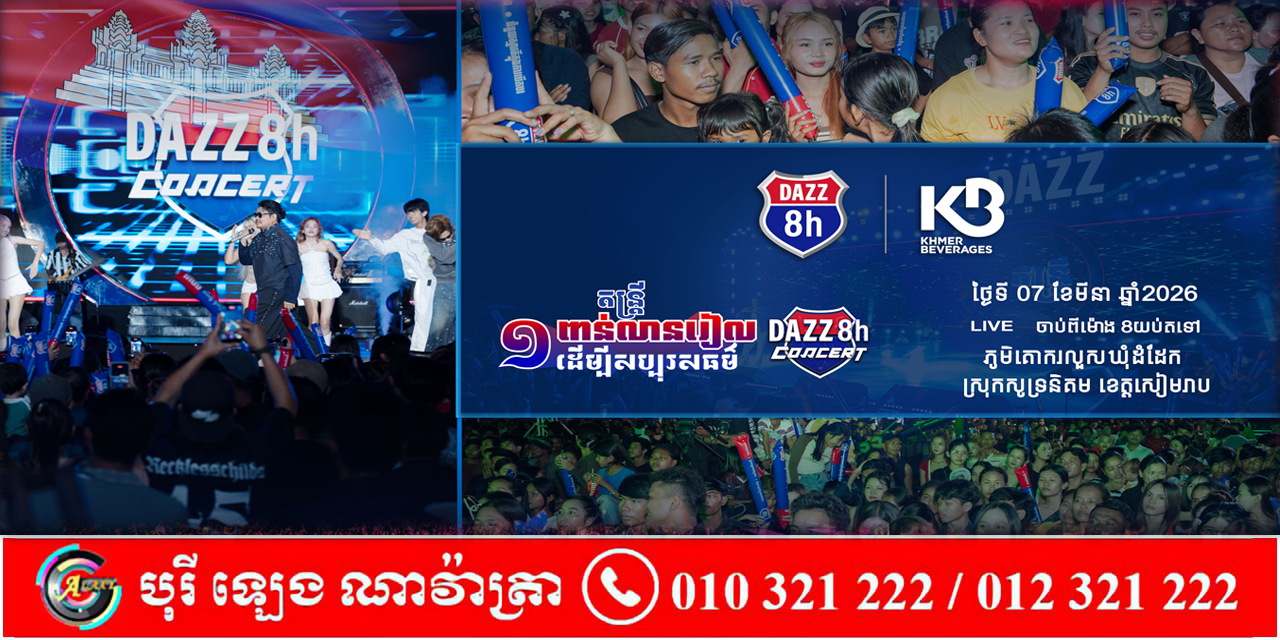 រីករាយជាមួយការប្រគំតន្រ្តី DAZZ CHARITY CONCERT នៅភូមិគោករលួស ឃុំដំដែក ស្រុកសូទ្រនិគម ខេត្ត សៀមរាប ដោយជួបជាមួយកំពូលតារាចម្រៀងល្បីៗប្រចាំនៅក្នុងផលិតកម្ម ហ្គាឡាក់ស៊ី ណាវ៉ាត្រា ជាក់ស្តែងនៅថ្ងៃទី ០៧ ខែ មីនា ឆ្នាំ ២០២៦ ជួបជាមួយកំពូលតារាចម្រៀង ឧកញ៉ា ខេមរៈ សិរីមន្ត , លោក ខេម , កញ្ញា ហុិន លីដា និងតារាចម្រៀងវ័យក្មេងសំឡេងពីរោះជាច្រើនរូបទៀត ។