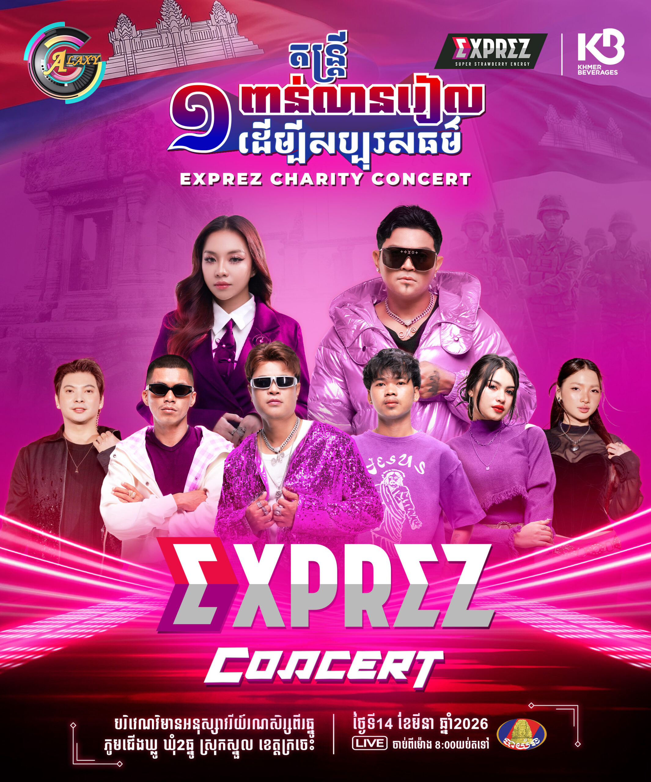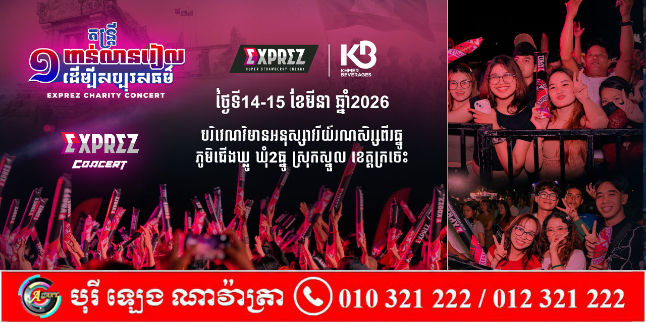 នៅចុងសប្តាហ៍នេះព្រឹត្តិការណ៍ប្រគំតន្រ្តី EXPREZ CHARITY CONCERT នឹងជួបបងប្អូននៅវិមានអនុស្សាវរីយ៍រណសិរ្ស២ធ្នូ ភូមិជើងឃ្លូ ឃុំ២ធ្នូ ស្រុកស្នួល ខេត្តក្រចេះ ជាក់ស្តែងនៅថ្ងៃទី១៤ ខែ មីនា ឆ្នាំ ២០២៦ ជួបជាមួយកំពូលតារាចម្រៀង ឧកញ៉ា ខេមរៈ សិរីមន្ត , កញ្ញា តន់ ចន្ទសីម៉ា ព្រមទាំងតារាចម្រៀងវ័យក្មេងជាច្រើនរូប ។ ចំណែកថ្ងៃទី១៥ ខែ មីនា ឆ្នាំ ២០២៦ ជួបជាមួយកំពូលតារាចម្រៀង លោក ព្រាប សុវត្ថិ , ខេម, សុវត្ថិ មុនីវណ្ណ , សុវត្ថិ សិរីវុឌ្ឍ ព្រមទាំងតារាចម្រៀងជាច្រើនរូបទៀត លើកនេះកាន់តែប្លែកជាងលើកមុនៗ ដោយសិល្បករទាំងអស់បានត្រៀមបទចម្រៀង ក្បាច់រាំ និងមានអ្វីពិសេសដែលត្រៀមនឹង Surprise បងប្អូនអ្នកខេត្តក្រចេះផងដែរ ។