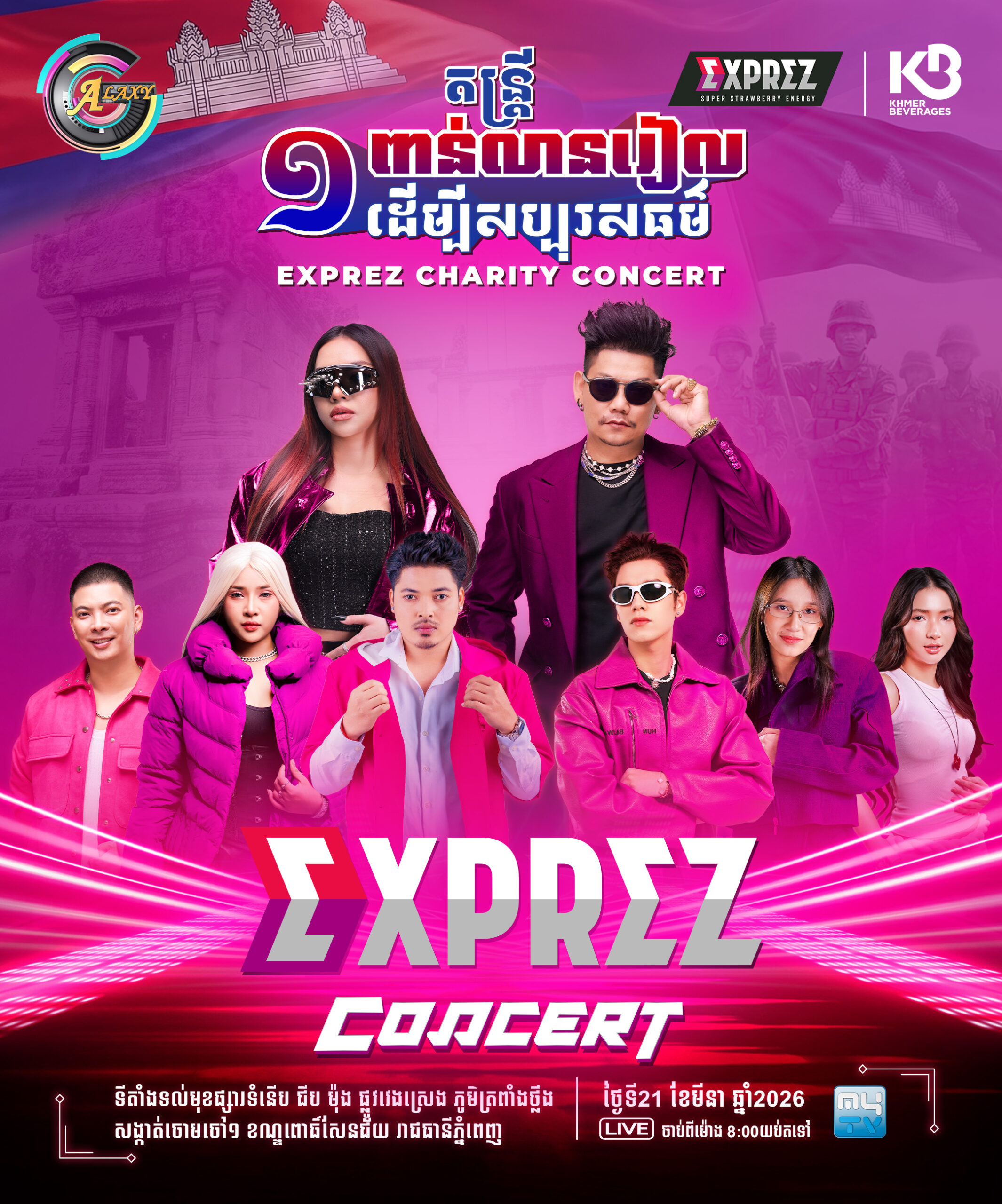 ដំណឹងល្អមិនធ្លាប់មាន ! មហាព្រឹត្តិការណ៍ប្រគំតន្រ្តី EXPREZ CHARITY CONCERTនៅចុងសប្តាហ៍នេះកាន់តែអស្ចារ្យនិងពិសេសជាងរាល់ដង ពីព្រោះលើកនេះការប្រគំតន្រ្តី EXPREZ CHARITY CONCERT នឹងរៀបចំឡើងនៅទីក្រុងភ្នំពេញនៅក្នុងឆាកប្រកួតផ្តាច់ព្រ័ត្រនៃកម្មវិធីប្រឡងចម្រៀងរ៉េប CAMBO RAPPER ។