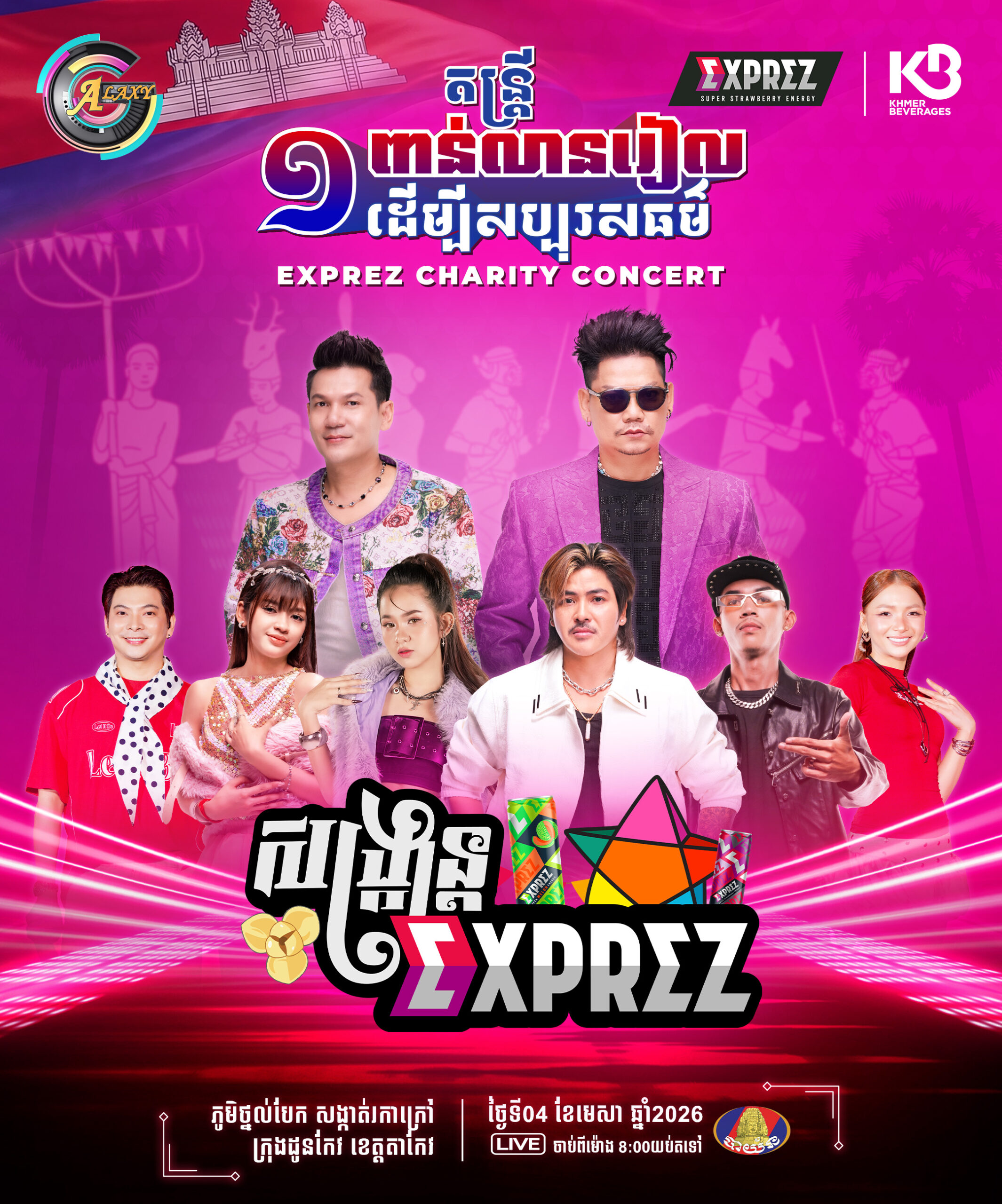 ព្រឹត្តិការណ៍ប្រគំន្រ្តី EXPREZ CHARITY CONCERT រួមជាមួយ សង្រ្កាន្ត EXPREZ នឹងធ្វើរួមគ្នានៅក្នុងទឹកដីភូមិថ្នល់បត់ សង្កាត់រកាក្រៅ ក្រុងដូនកែវ ខេត្តតាកែវ តាមការសន្យា ដោយមានការសម្តែងនិងច្រៀងពីកំពូលតារាចម្រៀងល្បីៗជាច្រើនប្រចាំនៅក្នុងផលិតកម្ម ហ្គាឡាក់ស៊ី ណាវ៉ាត្រា ។ នៅថ្ងៃទី ០៤ ខែ មេសា ឆ្នាំ ២០២៦ ជួបជាមយយកំពូលតារាចម្រៀង ព្រាប សុវត្ថិ , ខាន់ ជេមស៌ , វង្ស ថាណាន់ លោក 4L បេក្ខជន TOP4 និងតារាចម្រៀងជាច្រើនរូបទៀត ។ ចំណែក0ថ្ងៃទី ០៥ ខែ មេសា ឆ្នាំ ២០២៦ ជួបជាមួយកំពូលតារាចម្រៀង ខេមរៈ សិរីមន្ត , Tempo , កញ្ញា តន់ ចន្ទសីម៉ា និងតារាចម្រៀងជាច្រើនរូប ។