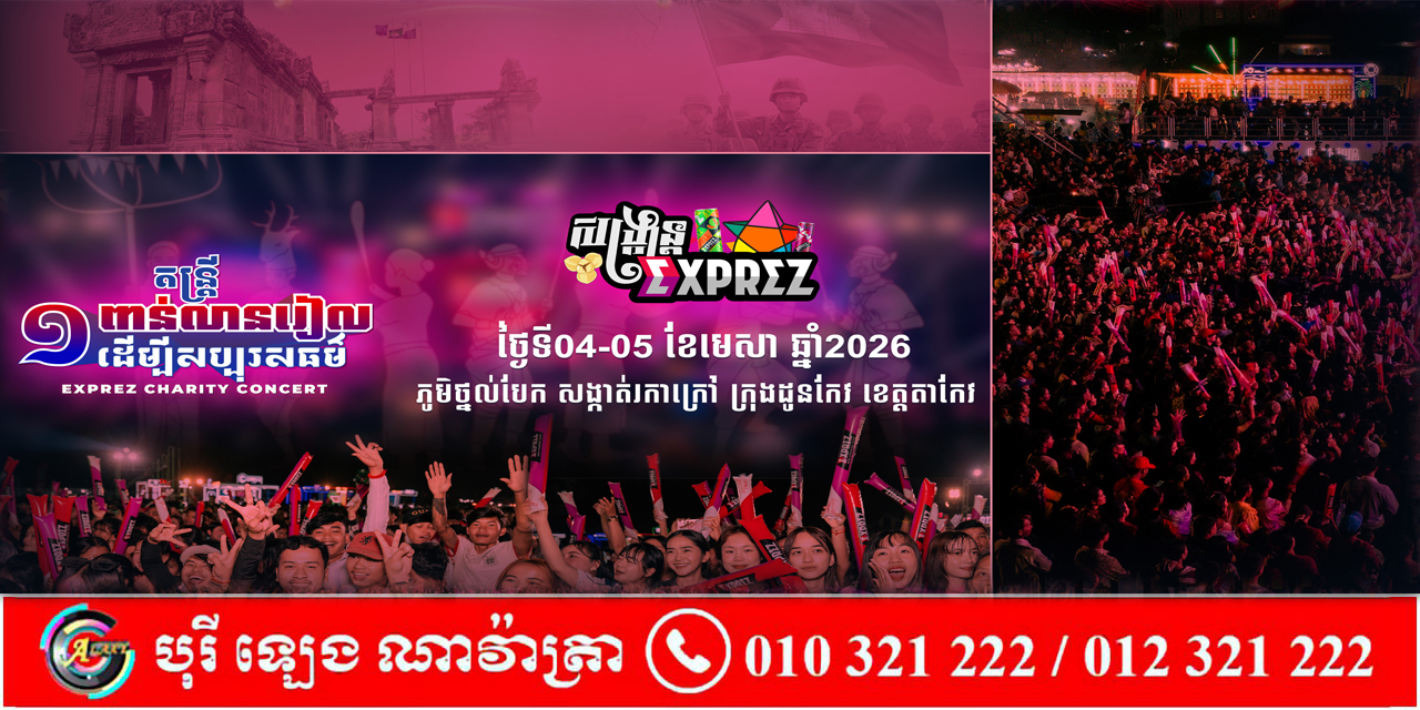 រីករាយជាមួយមហាព្រឹត្តិការណ៍ប្រគំតន្រ្តី EXPREZ CHARITY CONCERT ឬ សង្ក្រាន្ត EXPREZ នៅលើទឹកដីខេត្ត តាកែវ ជួបជាមួយ Idol នៅក្នុងដួងចិត្ត រាំលេងកម្សាន្តជាមួយមនុស្សដែលខ្លួនស្រឡាញ់ ទស្សនាការសម្តែងនិងច្រៀងដោយឥតគិតថ្លៃ រកឯណាបាន ! ទាំងអស់នេះមានតែនៅក្នុងព្រឹត្តិការណ៍ប្រគំតន្រ្តី EXPREZ CHARITY CONCERTប៉ុណ្ណោះ ។ ចូលរួមទស្សនាដោយសេរី ប៉ុន្តែកុំភ្លេចរកដៃគូមកជាមួយផង ដើម្បីបានស្រែកហ៊ោរួមគ្នា សប្បាយ សប្បាយនៅក្នុងការប្រគំតន្រ្តី EXPREZ CHARITY CONCERT ៕