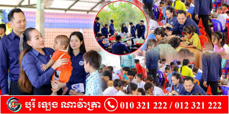 អ្នកឧកញ៉ា ឡេង ប្រុស និងលោកជំទាវ តំណាងអ្នកឧកញ៉ា ឡេង ណាវ៉ាត្រា ប្រធានសហព័ន្ធយុវជនបូជាការពារយុត្តិធម៌ អញ្ជើញសួរសុខទុក្ខ និងរៀបចំអាហារជូនដល់កុមារកំព្រានៅមណ្ឌលមែកឈើ