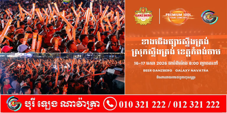 អ្នកស្ទឹងត្រង់ ខេត្តកំពង់ចាម ចាំទទួលផង ! តារាចម្រៀងល្បីៗត្រៀមអង្រួនឆាកតន្រ្តី Ganzberg Premium Idol Tour Concert 2026 ២ថ្ងៃជាប់គ្នា
